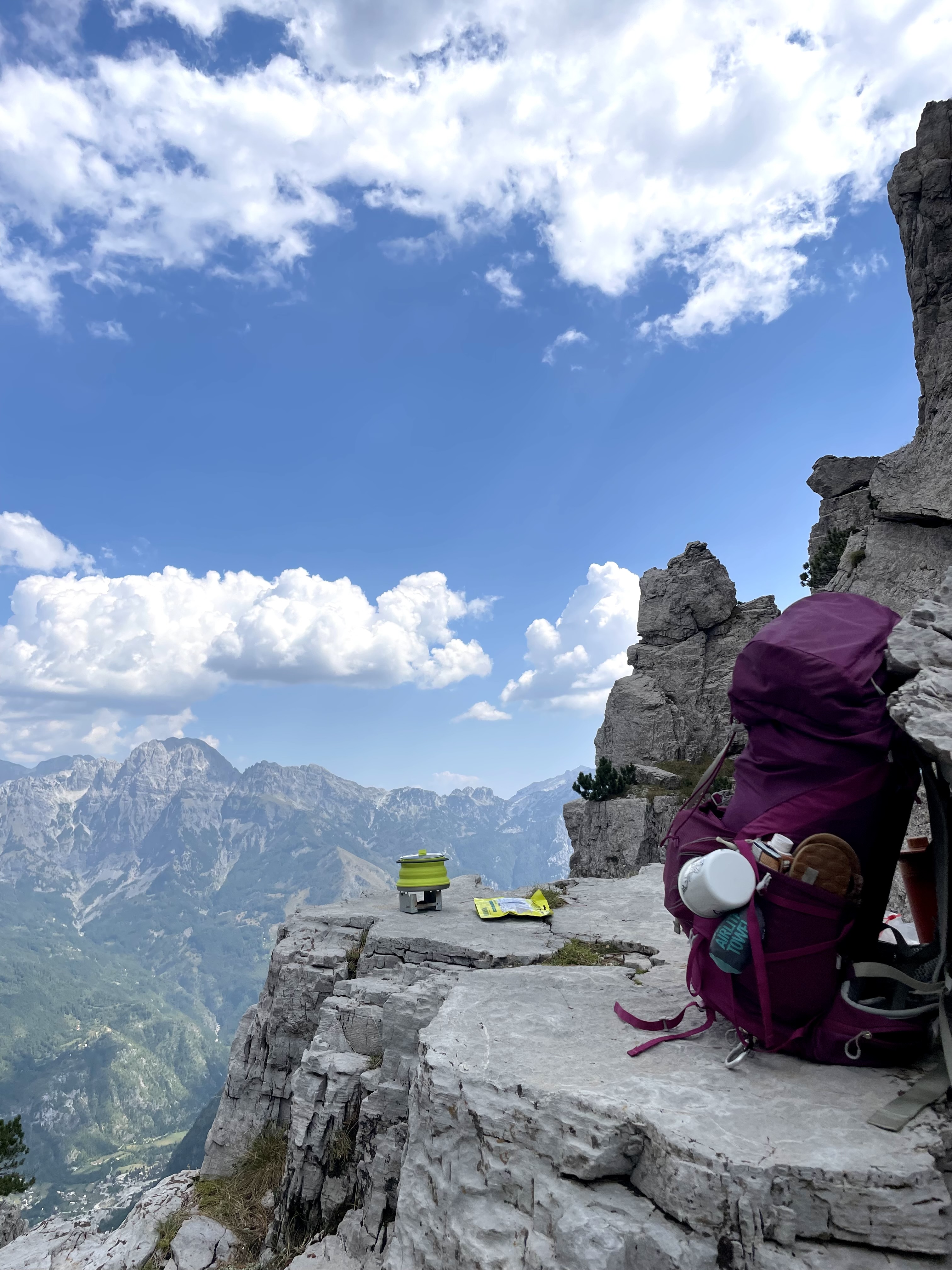 Na začátek výpravy většinou ještě nakoupím nějaké pečivo, neboť je k nalezení v podstatě všude, k tomu nějaké ovoce či zeleninu, která přežije alespoň chvíli život v krosně (například jablka nebo okurku) a k tomu beru eidam, protože vydrží chvíli i v teple (cca 3 dny) a je parádním zdrojem bílkovin a vápníku. Zároveň je moje must have bábovka, na kterou první dny nedám dopustit (bydlenka k pohledání prostě).